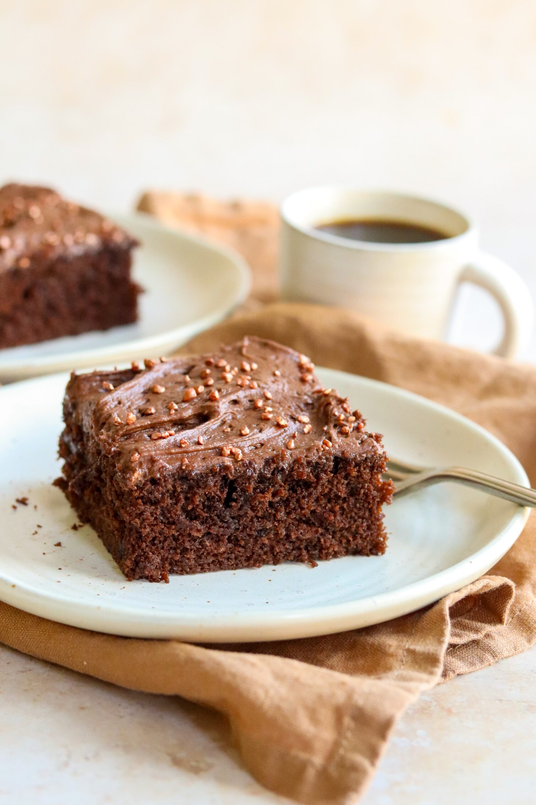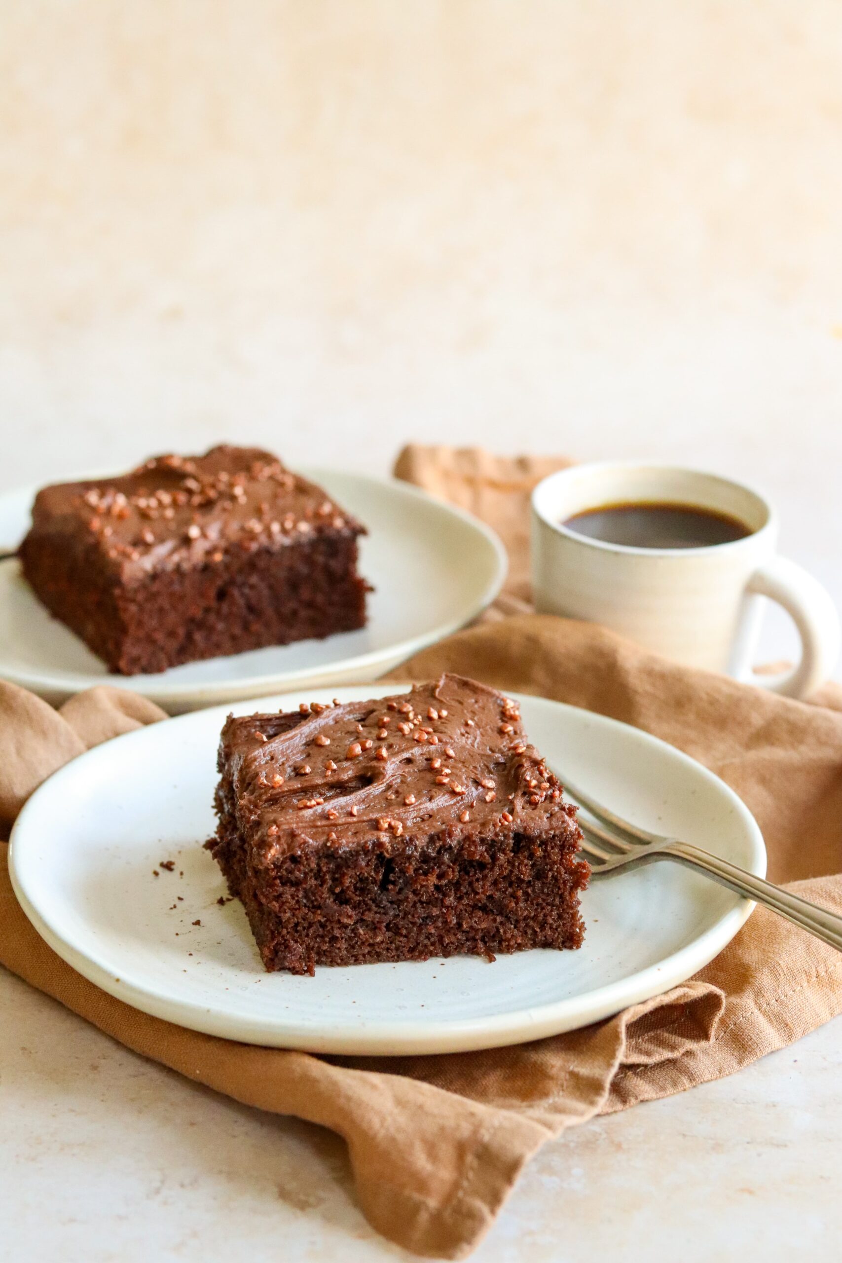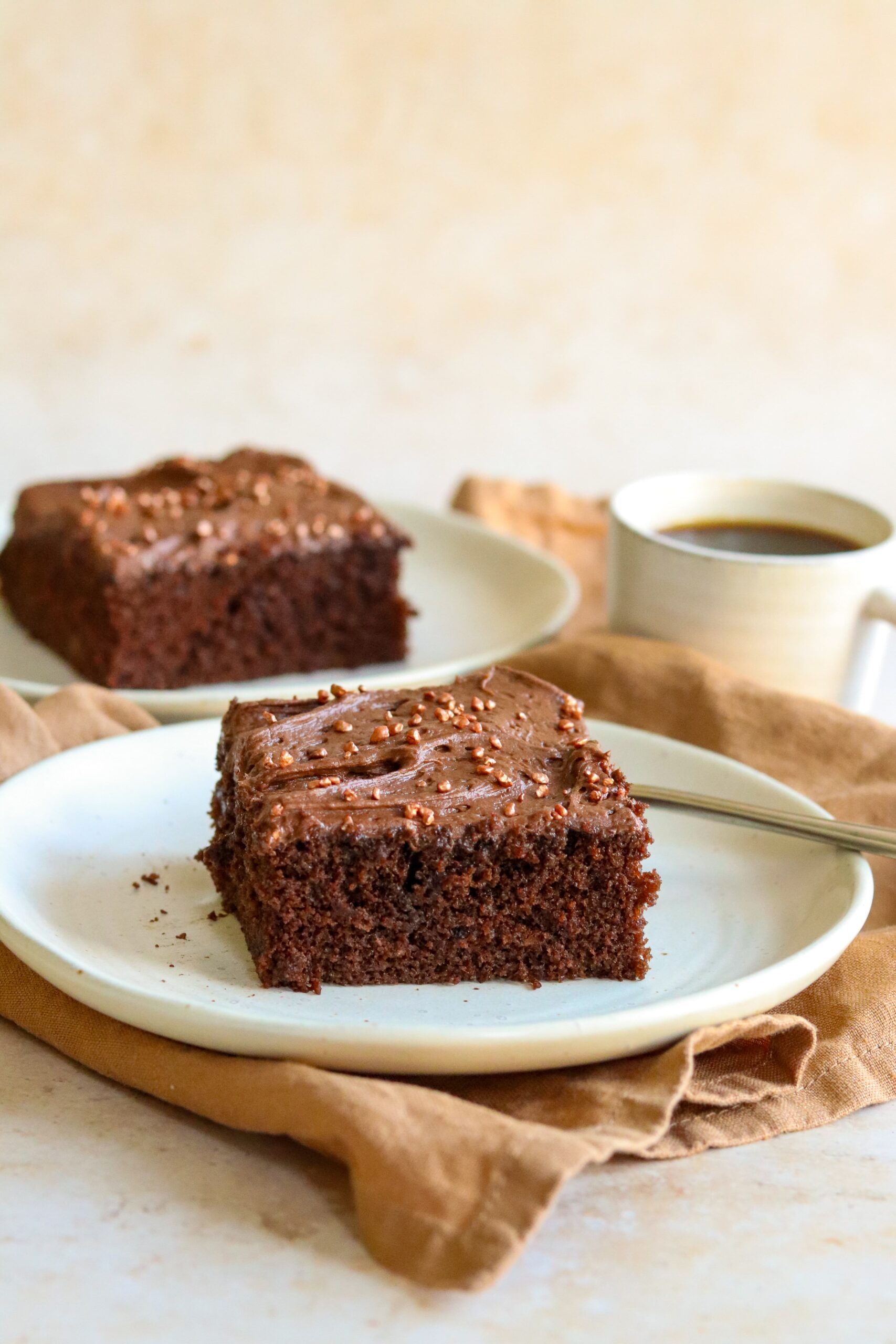 For this Chocolate Traybake I would use Dutch processed cocoa powder. Read more about Dutch processed vs Natural Cocoa Powder over at Sally’s Baking Addiction.