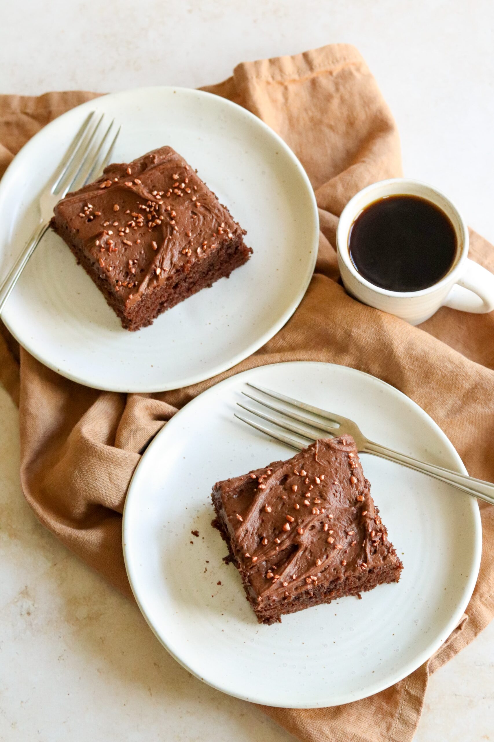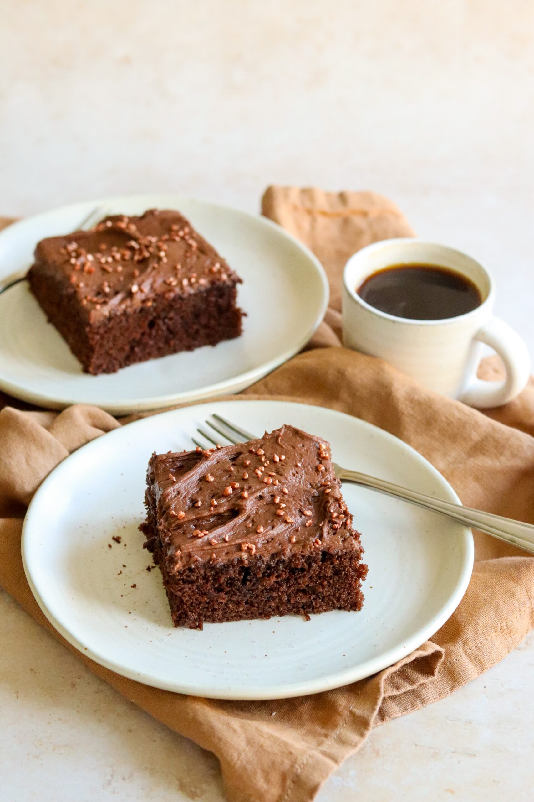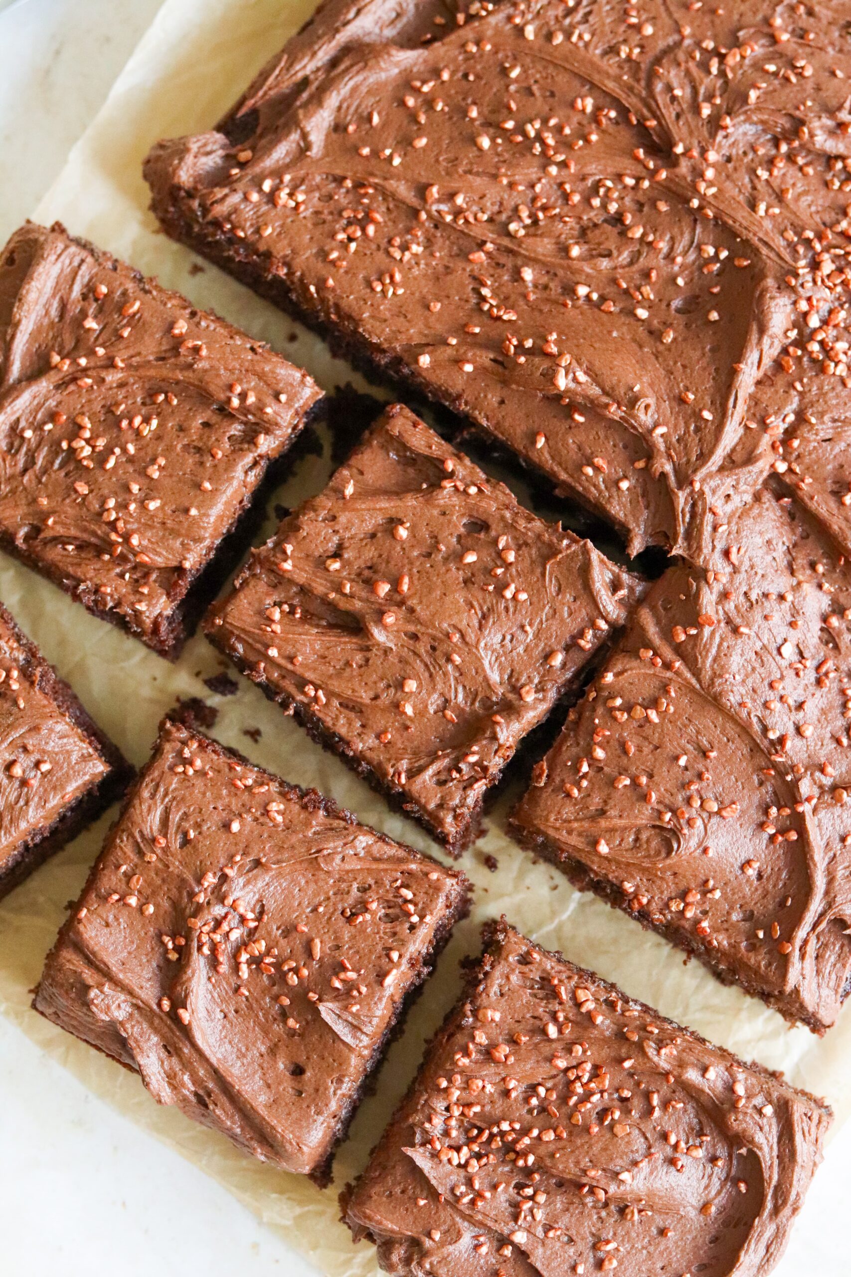 For this Chocolate Traybake I would use Dutch processed cocoa powder. Read more about Dutch processed vs Natural Cocoa Powder over at Sally’s Baking Addiction.