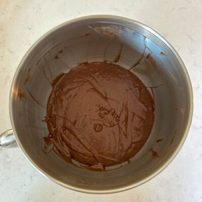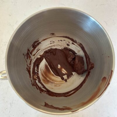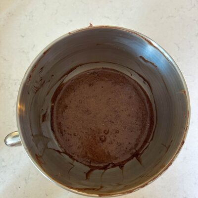 Add 50g cocoa powder and ¼ tsp instant coffee to your mixer or a bowl and add 6 tbsp of water from a recently boiled kettle. Mix to form a thick paste