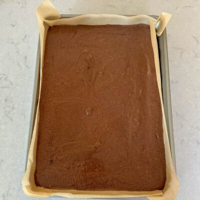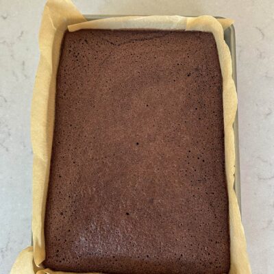I use a 10×8″ (approx 25x20cm) traybake tin for this cake. This is a fairly standard traybake size tin to use. However this cake is quite forgiving and if your tin is slightly different you should be absolutely fine.